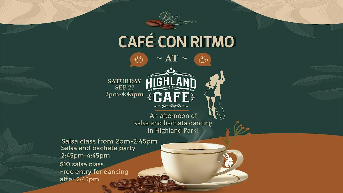 Welcome to CAFÉ CON RITMO! Join us for an afternoon of Salsa and Bachata Dancing at The Highland Cafe. Get ready to move your hips, meet new friends, and enjoy some delicious coffee. Whether youre a seasoned dancer or just starting out, this event is perfect for everyone.
